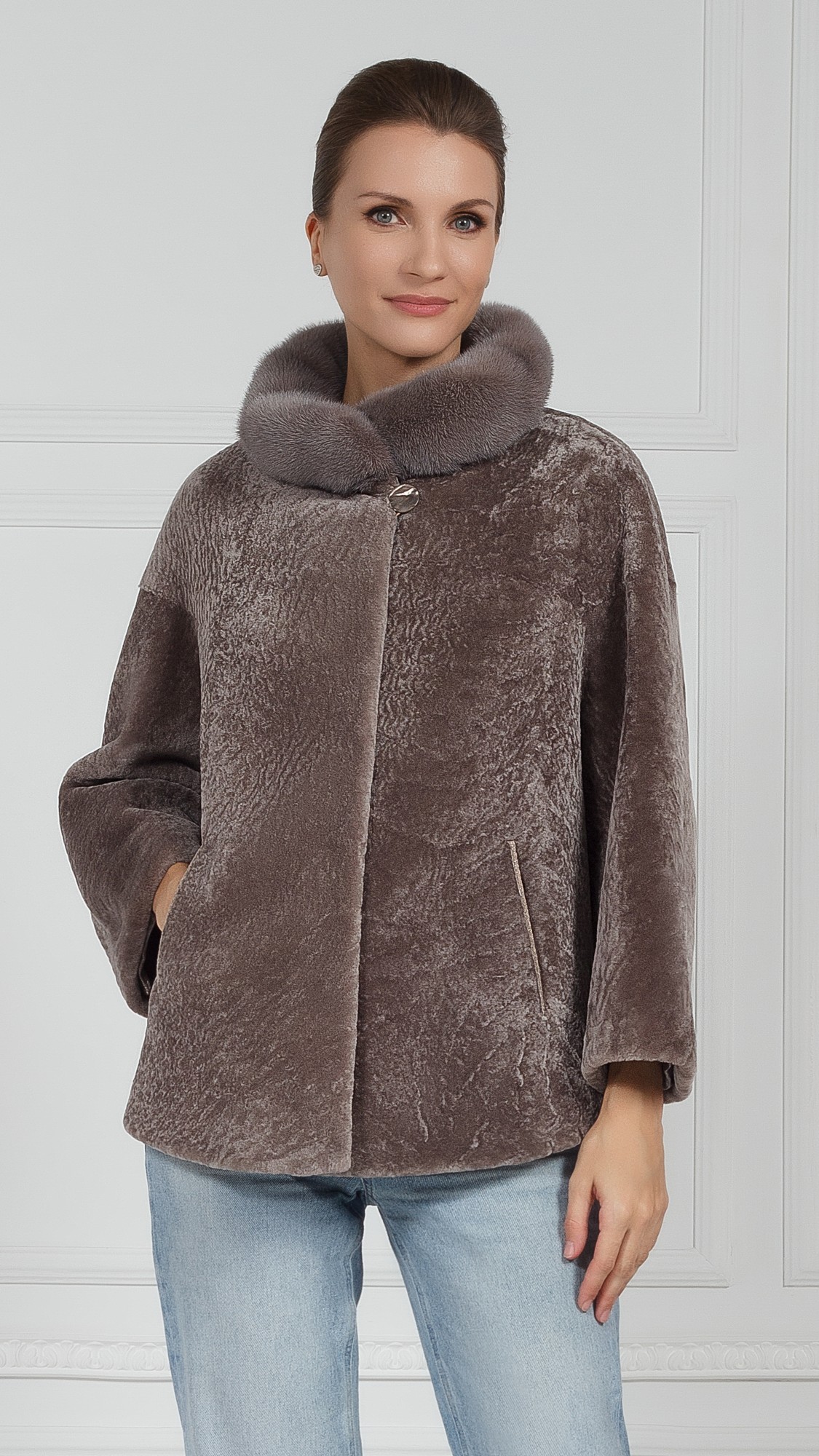 Куртка из овчины, отделка норка